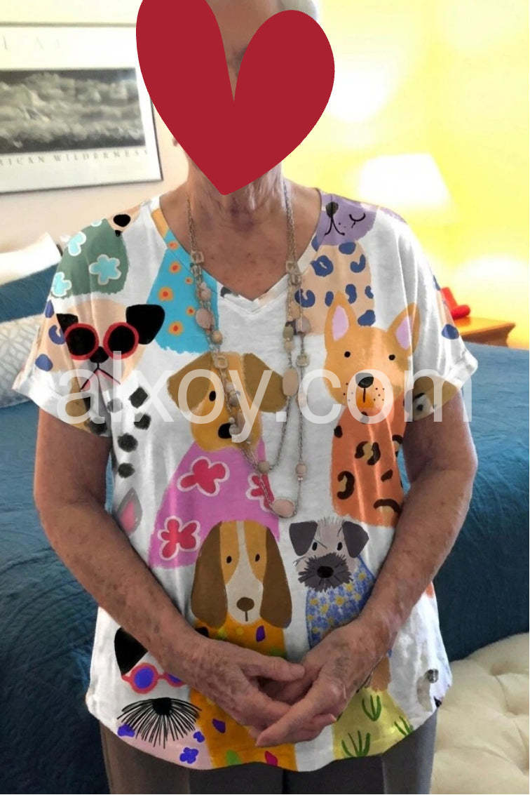 Whimsical Dog Print Short Sleeve Top