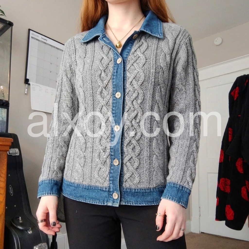 I’m really happy with this purchase. The knit texture is thick enough to feel warm, and the buttons add a classic touch. What I love most is the contrast between the gray sweater body and the blue denim neckline—it makes the top look more layered and fashionable. It’s become one of my go-to pieces.