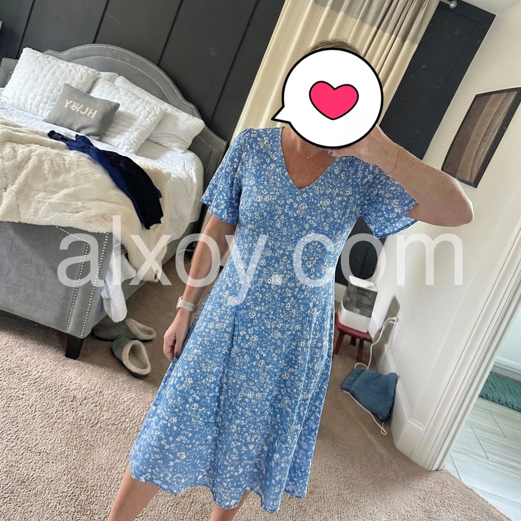 Designed to fix the "too tight or too baggy" dress pain point, this dress features a V-neck that flatters the bust, and flare sleeves that hide arm fat. The flowy A-line skirt skims over hips and thighs.