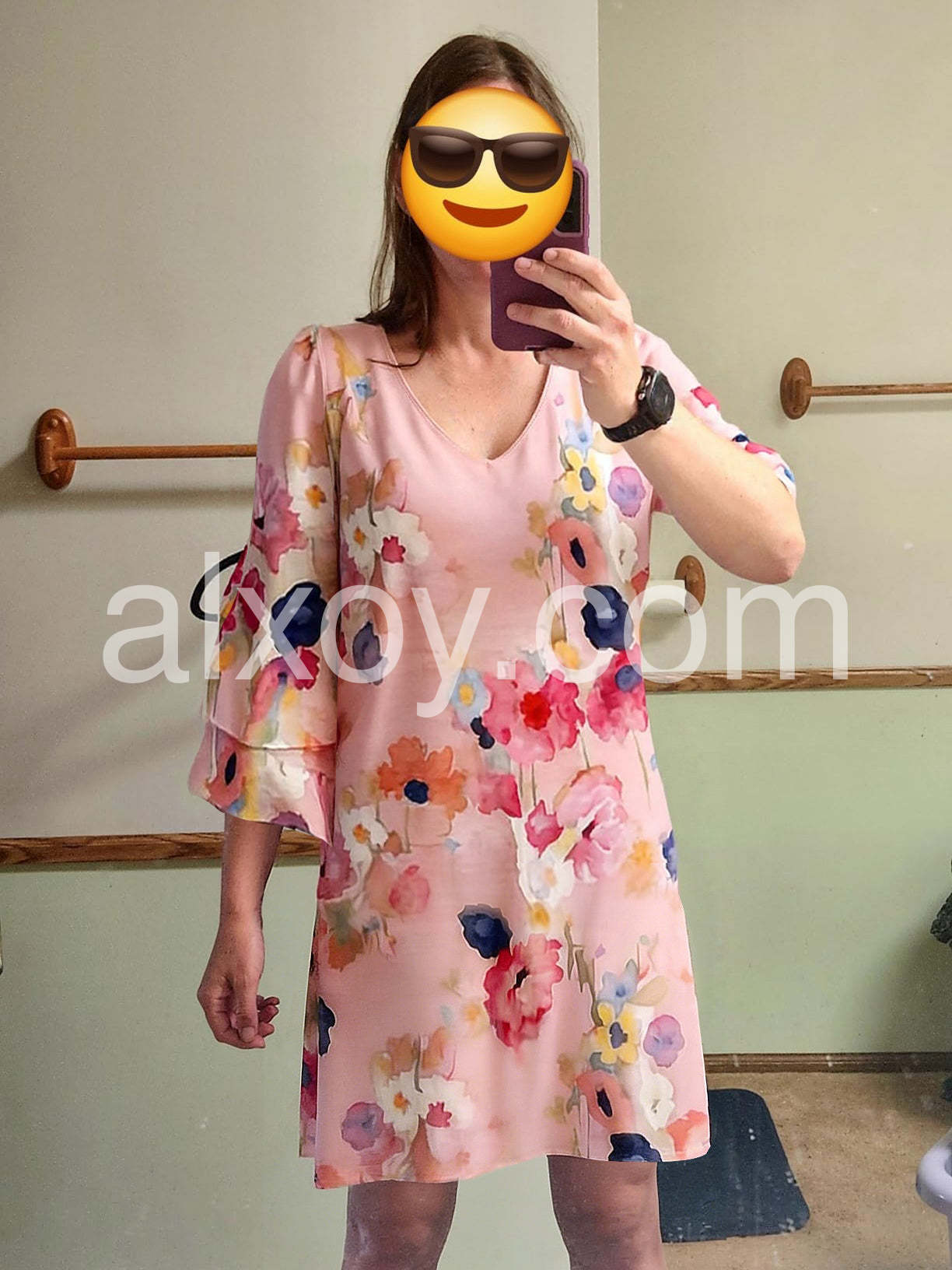 Style# 1544501Embrace soft romance and effortless style in this Pink Watercolor Floral 3/4 Sleeve Mini Dress , a dreamy mini dress that captures the beauty of blooming spring. Crafted from lightweight, flowing fabric—likely chiffon or rayon blend—this dress features a delicate watercolor-inspired floral print in vibrant shades of pink, coral, navy, yellow, and white, creating a painterly effect across the soft blush base. The flattering V-neckline adds a touch of elegance, while the short ruffle sleeves bring playful volume and feminine charm. A relaxed, A-line silhouette ensures comfort and ease, making it perfect for casual days, brunches, or warm-weather outings. Paired here with layered bracelets and a pearl necklace, it exudes boho-chic appeal. Ideal for beach trips, garden parties, or weekend strolls, this dress brings a sense of lightness, joy, and timeless femininity to your wardrobe. Let this floral mini dress turn every moment into a gentle celebration of color and style.