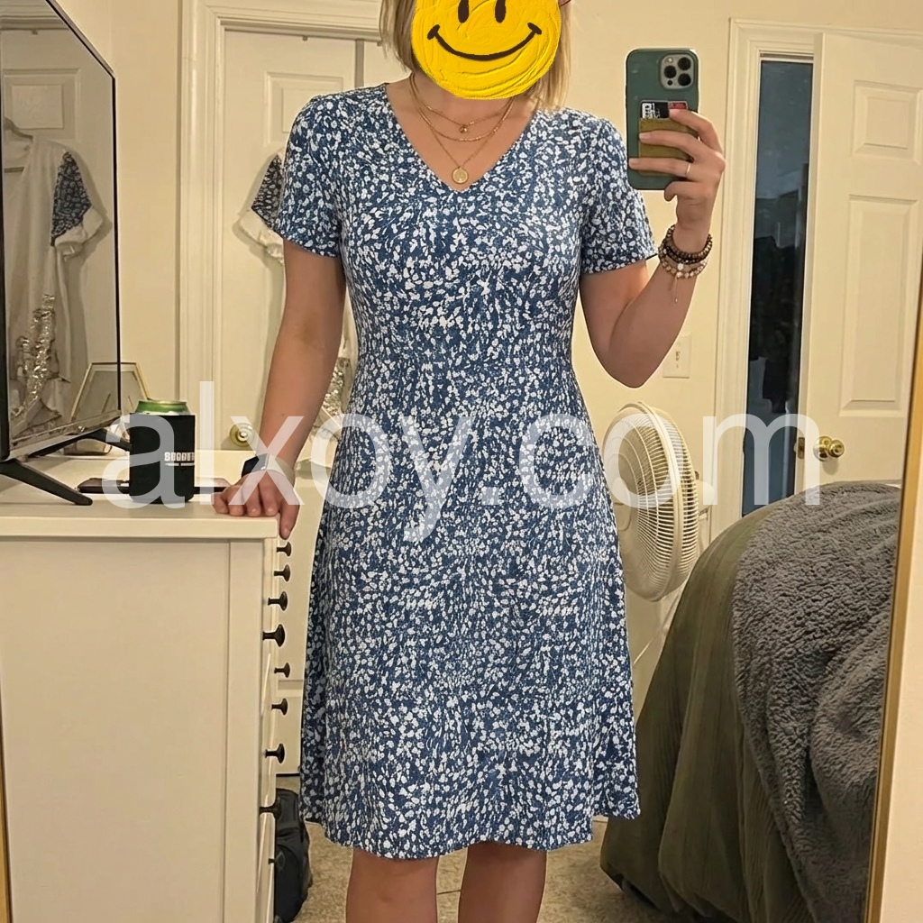 Five stars! This blue ditsy dress exceeded my expectations. It feels like a boutique find. Very soft, lightweight, and hugs all the right places without clinging.