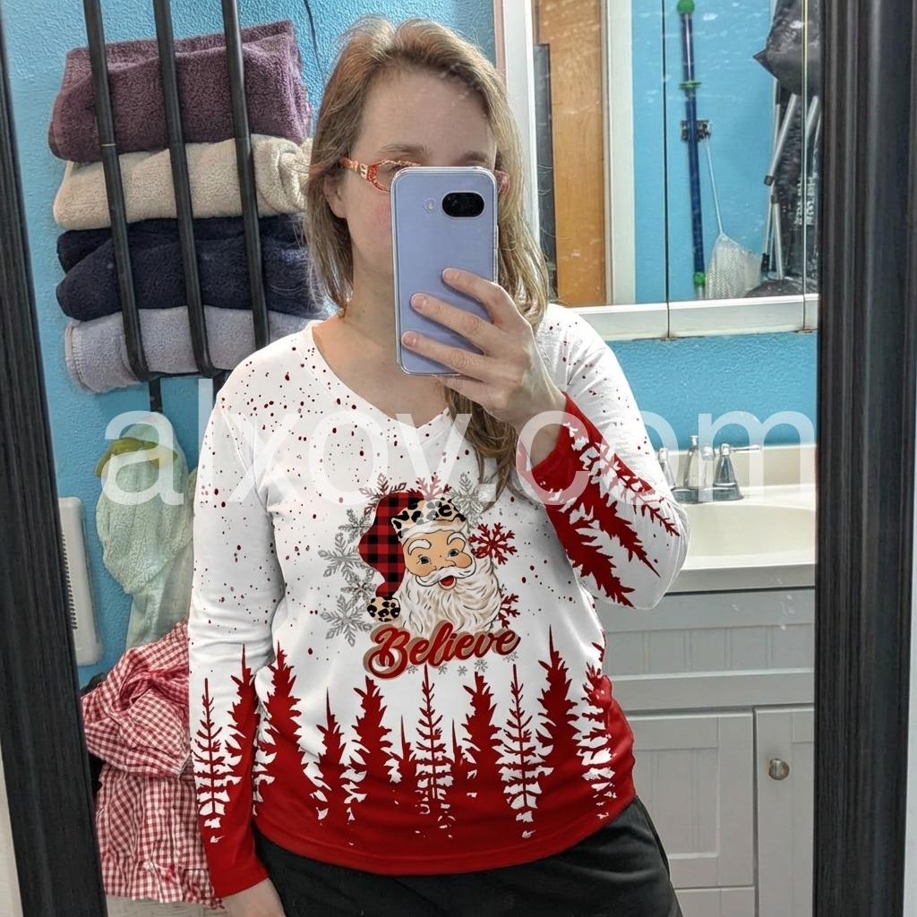 Love this shirt. Perfect for the holiday season for casual outings. Fits perfect.
