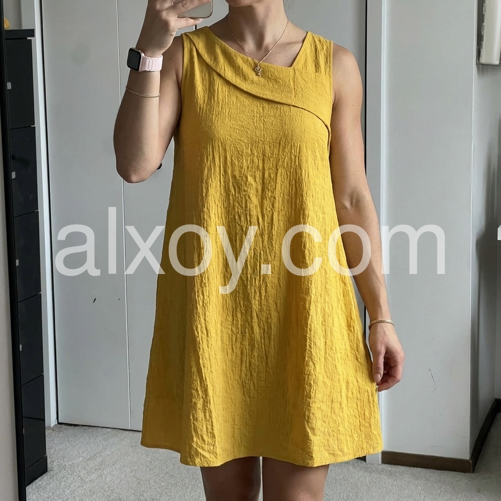 This stylish Yellow Sleeveless Plain Mini Dress is a must-have for any fashion-forward wardrobe. Made from high-quality materials, it features a vibrant yellow color, a flattering sleeveless design, and a versatile plain pattern. Perfect for any occasion, this dress is sure to make a statement and turn heads wherever you go.