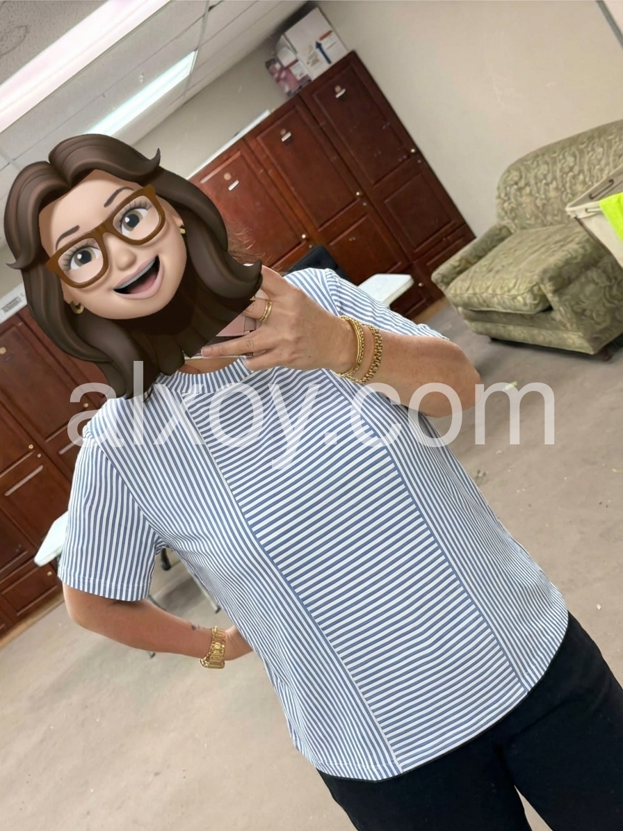 Blue White Stripe Round Neck Short Sleeve T-Shirt