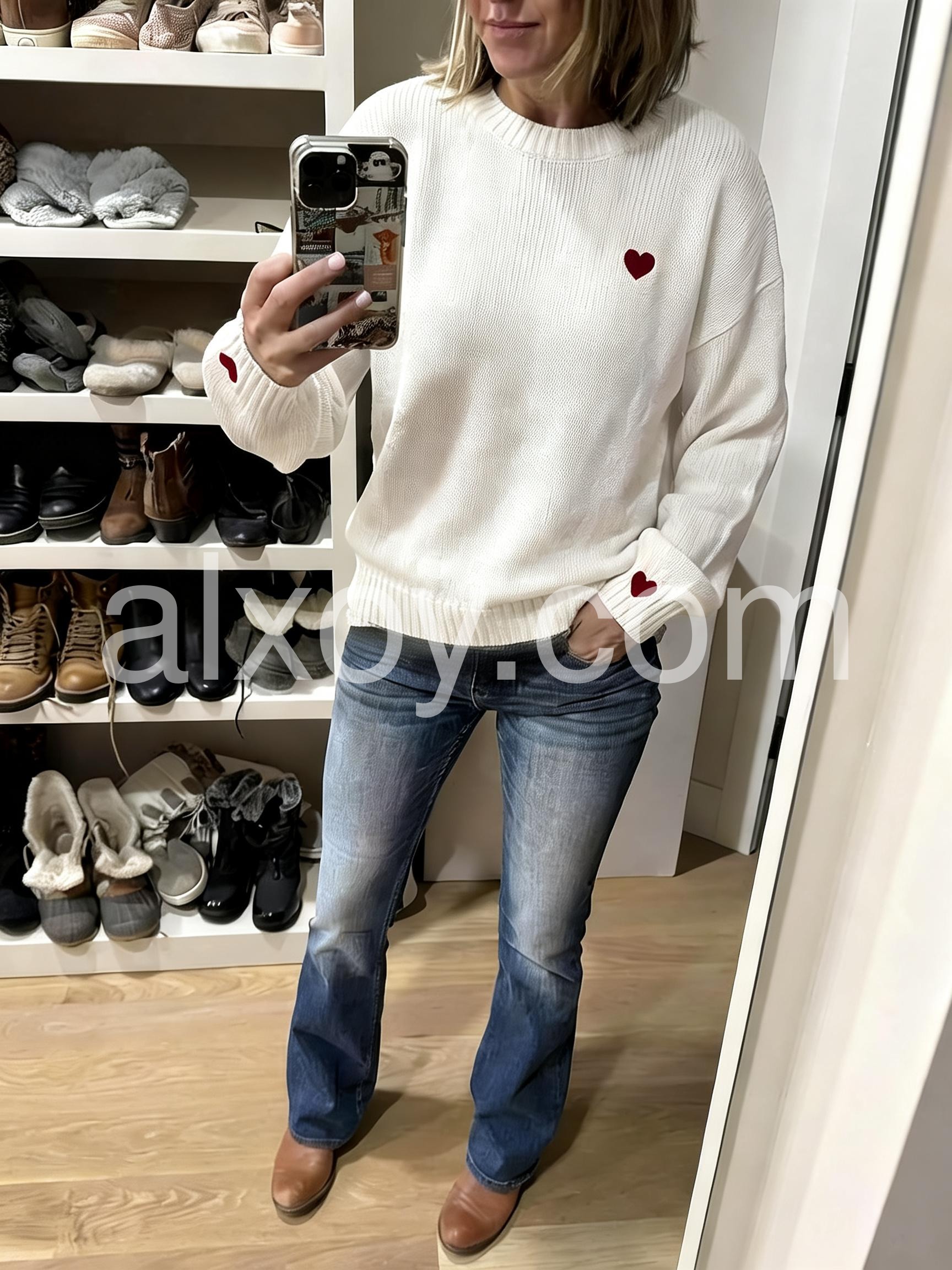 This is a good one!!!! This sweater is one that you will want and wear all fall and winter long. The sleeves are long enough they cover most of hands which I love!!! I won't buy sweaters unless their sleeves come to my knuckles when pulled all the way down. I love to pull them down around my hands when cold or uncomfortable and this does that. The neckline is circular but doesn't strangle nor itch. It's perfect! The size of this shirt works great if untucked and if you tuck it in, it's not so bulky that it is an eyesore in your jeans.