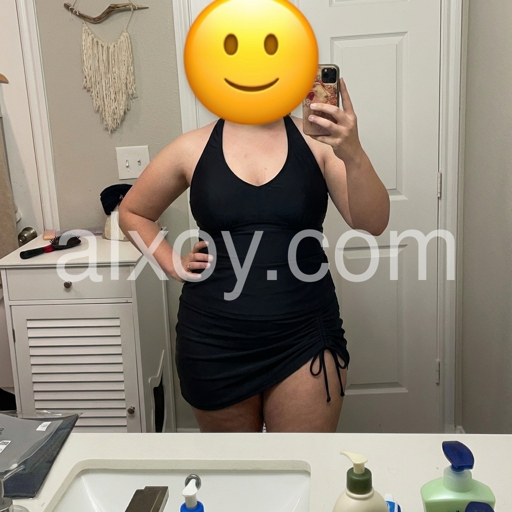 True to size, I’m between a large and X-Large. Ordered the X-Large and it fits so well. Good coverage, while still cute. Perfect for a family trip.