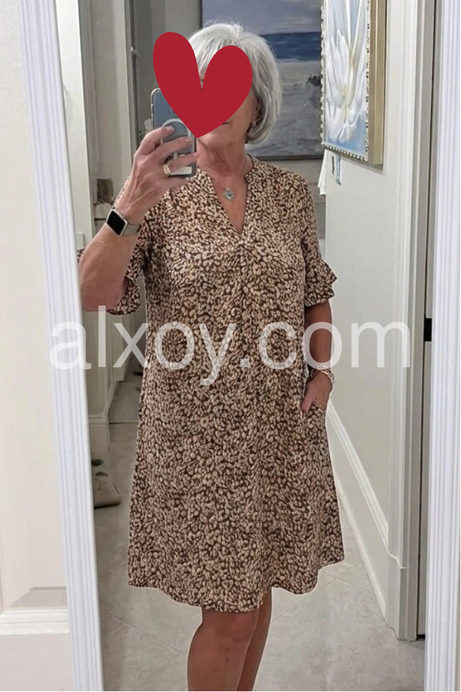 Earth-Tone Print Mini Dress