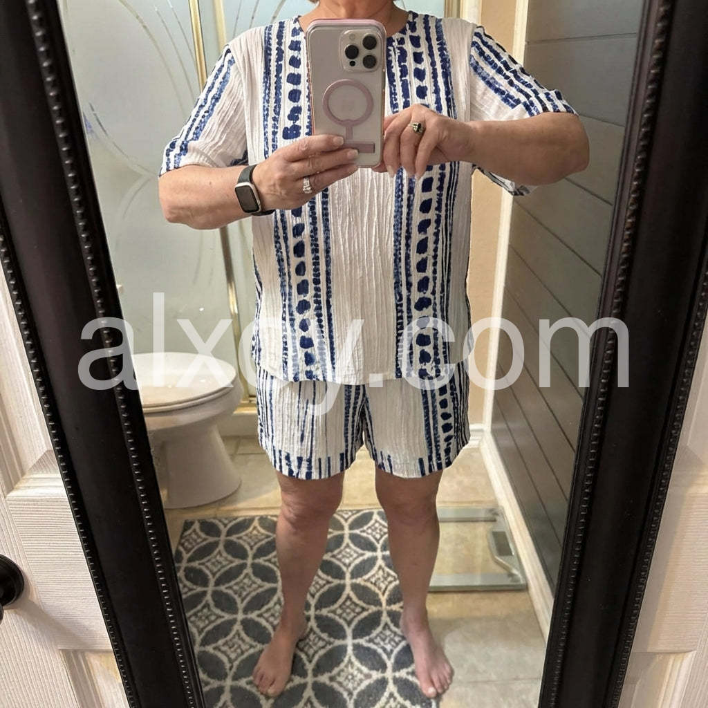 Elevate your loungewear collection with this meticulously designed Round Neck Short Sleeve Two Piece Set. Crafted for optimal comfort without sacrificing style, this versatile ensemble features a relaxed fit and premium fabric composition that maintains its shape throughout daily wear. The thoughtfully constructed round neckline and short sleeves offer unrestricted movement, making it ideal for both relaxation and casual outings. A sophisticated essential for the discerning customer seeking both functionality and refined aesthetics.