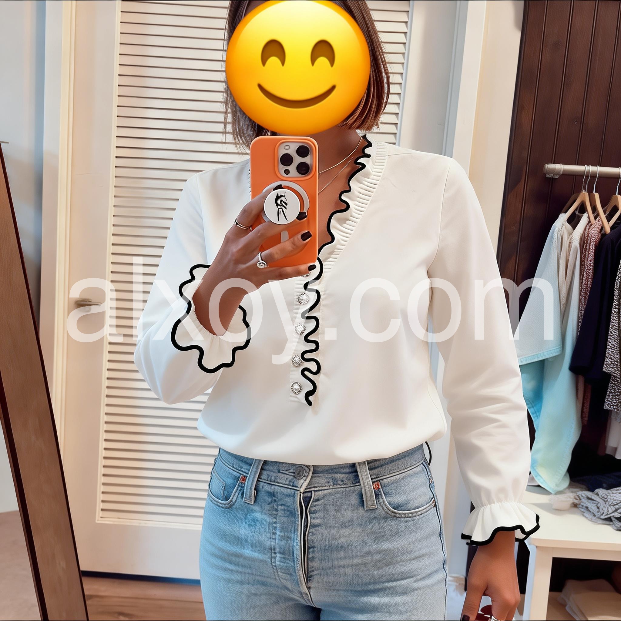 Beautiful top for work or a nice dinner out. The pearl-like buttons add such an elegant touch, and the scalloped edges really make it stand out. I received so many compliments the first day I wore it.