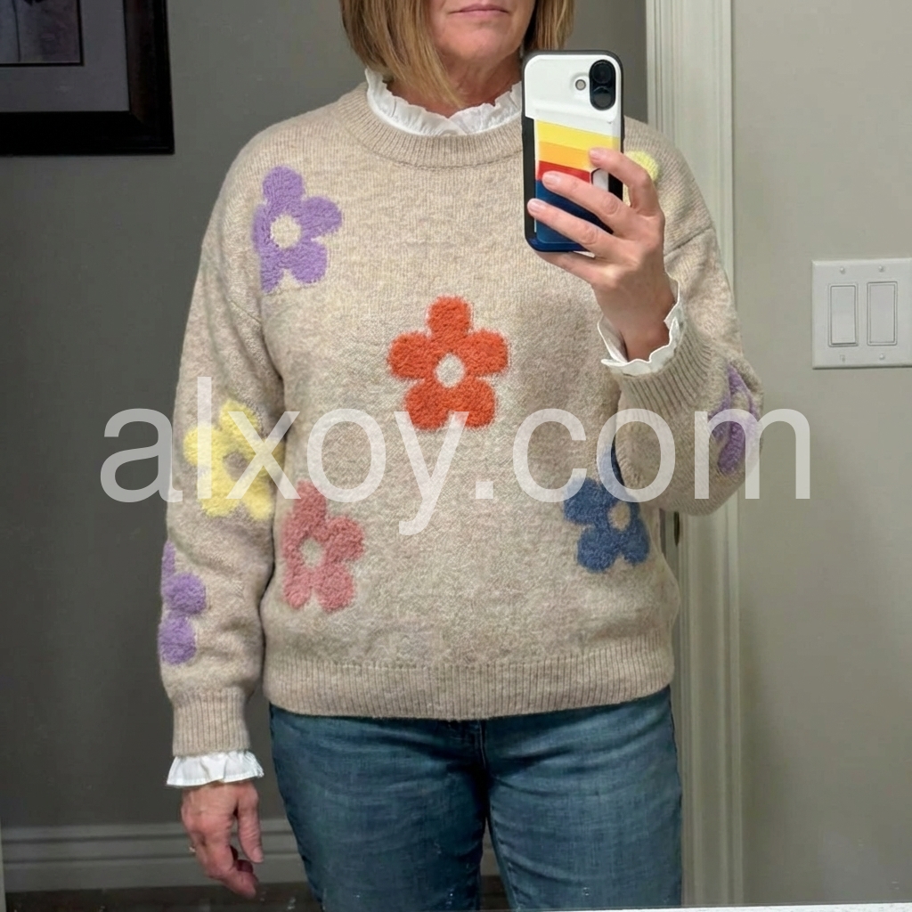 This sweater is my new favorite! It's so pretty and fits true to size. The color and details are true to the pictures and it's comfortable and not scratchy at all. It washes well (air dry). I recommend this!