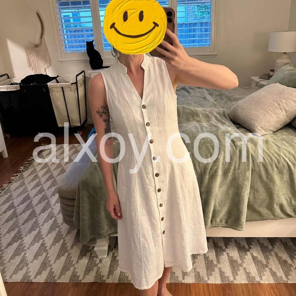 OMG girls, this white linen dress is the ULTIMATE wardrobe staple that fixes your "nothing to wear" dilemma! Tired of dresses that don’t flatter your figure? The vertical seaming slims your torso, while the cinched waist creates a gorgeous hourglass shape—no awkward bagginess!